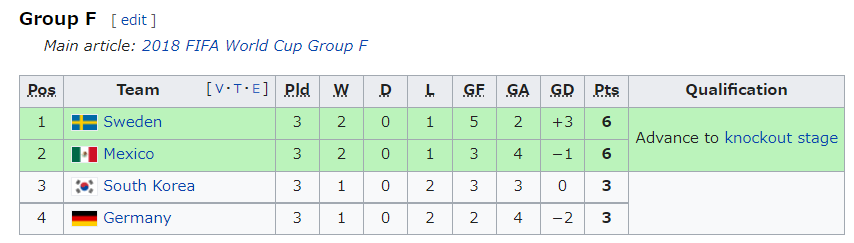 メキシコ、スウェーデン>>>>>ドイツ、韓国 ←グループリーグ敗退