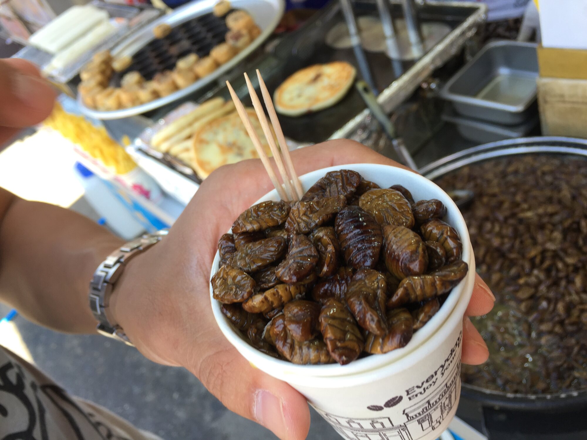 これまで韓国に昆虫食がまったくなかったわけではない。日本人でも知る人ぞ知る、“ポンデギ”という食べ物があるのだ。これは、カイコのサナギをゆでたり蒸したりしたもので、遊園地などでも普通に売っている。韓国人なら誰もが一度は口にしたことがある、昔ながらの定番おやつでもある。