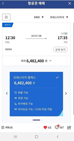 大韓航空KE054便に乗ってハワイから仁川(インチョン)に来たというこの乗客は今月13日、ポータルサイト「ネイバー」のあるコミュニティへの書き込みで、片道648万2400ウォンの片道航空券の購入内訳の写真をあげて大韓航空の機内サービスを糾弾した。