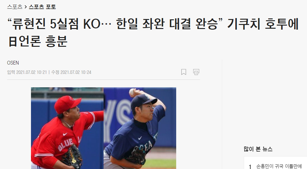 로이터 통신도 "토론토 선발 류현진이 에인절스 선발 오타니를 꺾었다"며 오타니와의 맞대결에서 승리한 류현진에 초점을 맞췄다.