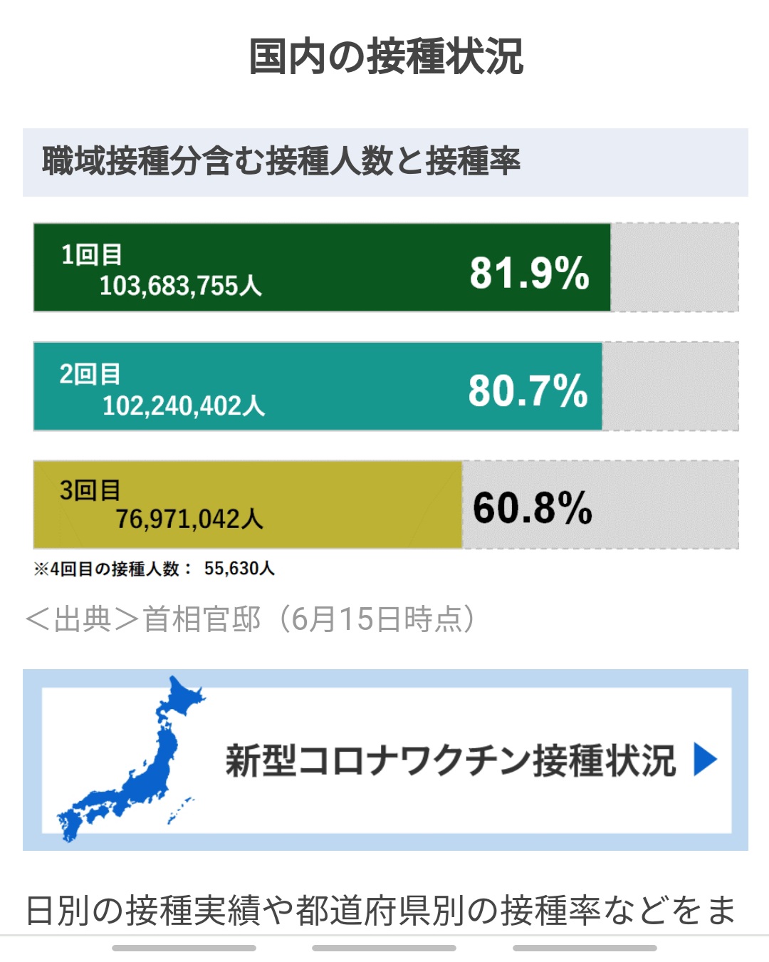 日本は行政力がある国で,コロナ初期に3億人分のワクチンも確保できた。それなのに, 統計上人口の96%が1回接種を受けた韓国とは違って,日本は大々的な広報にもかかわらず1回接種率が82%を越えなかった。日本人の思考は他のg7国家より特定アジアに近い点(政府を無条件的に信用する)を考えてみたら,日本の統計は確かに異常だ。