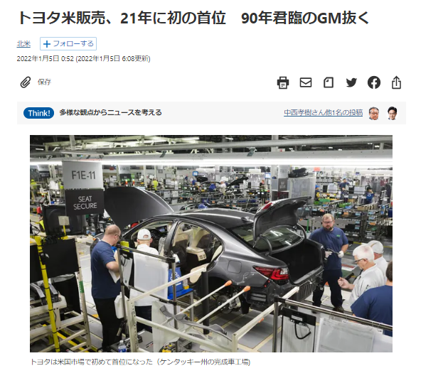ヨンダイ売れると良いねwwトヨタ米販売、21年に初の首位 90年君臨のGM抜く