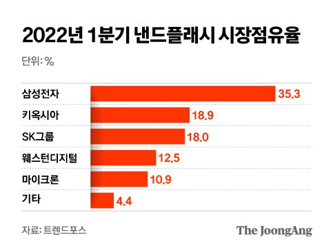 한국의 메모리 반도체 세계 시장 1분기 점유율