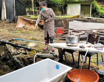 江原道チョンソン郡南面文谷2里を16日に取材した。里長のホン・ソンエさん(65)の自宅の周りには2リットルのペットボトル13本が置いてあった。飲み水などの生活用水が足りないため、先月から暇があればミネラルウオーターを買いに出かけているという。1カ月に水代だけで10万ウォン(約1万円)以上使うそうだ。ホンさんだけではない。この地域に住む45世帯の住民約150人はここ最近干ばつの直接の影響を受け、1滴の水さえ節約しながら過ごしている。文谷2里は海抜650-800メートルに住宅が集まっており、普段から水道があまり出ないので周辺の谷からホースで水を引いて使ってきた。ところが今回の干ばつの影響でこの谷の水は昨年11月にはすでにほぼ乾き、回復の兆しがまったく見えないという。