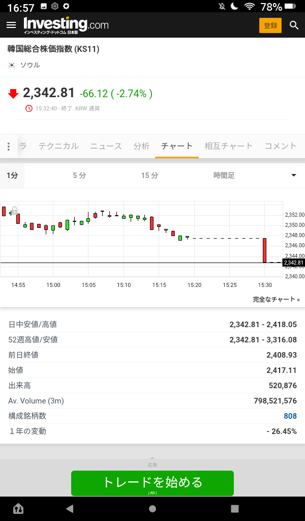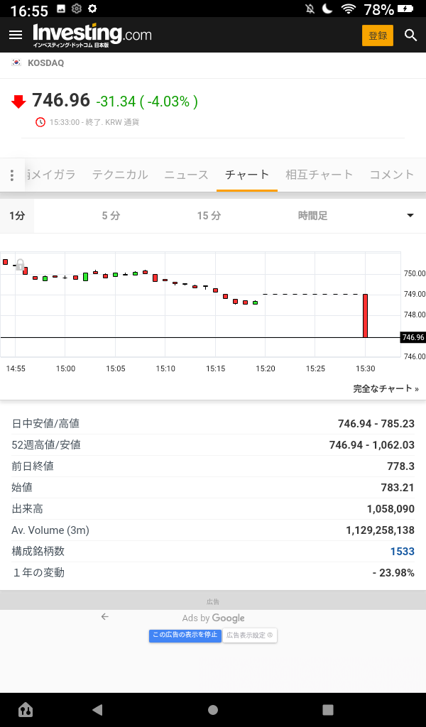 15:30頃となるとちょうど1300ウォン突破して祭りになった時間帯だね