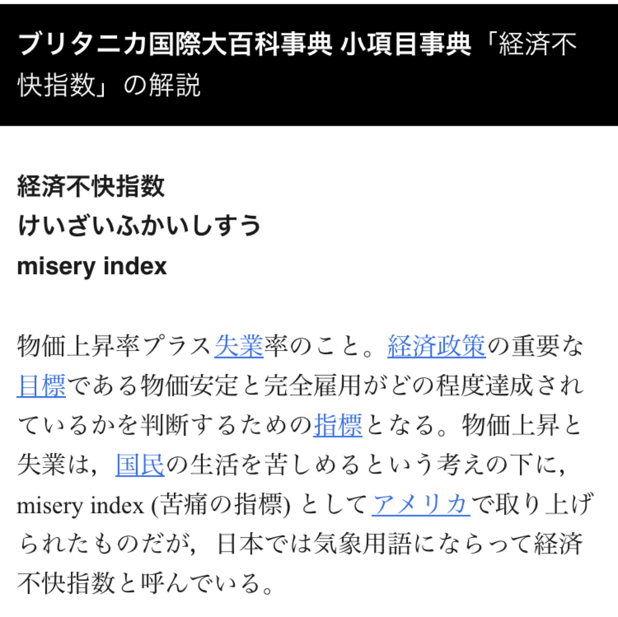 経済苦痛指数。これの対義語もあるのかしら?>>1