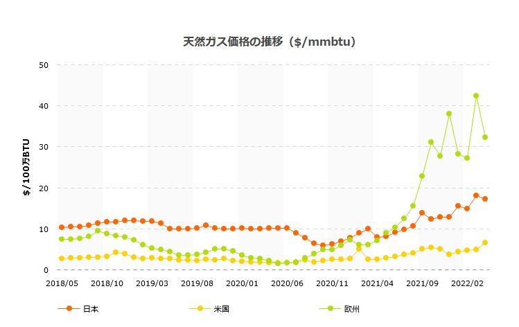 天然ガスの価格は長期契約よりスポット価格の崩が断然安かったので、他国はその時々の需給で決まるスポット価格つまり短期契約での調達に切り替えていて、日本はそれに乗り遅れただけなのよね。