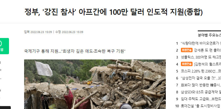22日(現地時間)深夜に発生したマグニチュード(M)5.9の強震で2500人以上の死傷者が発生したアフガニスタンに豪雨が襲い、救助活動が困難を強いられていることが明らかになった。昨年政権を取ったタリバンは「被害現場に到達できない」と言って国際社会に助けを訴えた。