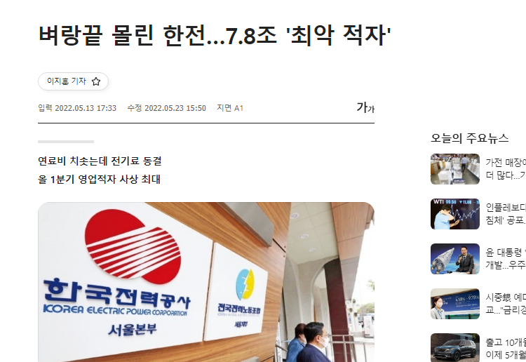 韓電は今年第1四半期だけで7.8兆ウォンの記録的な営業損失Www