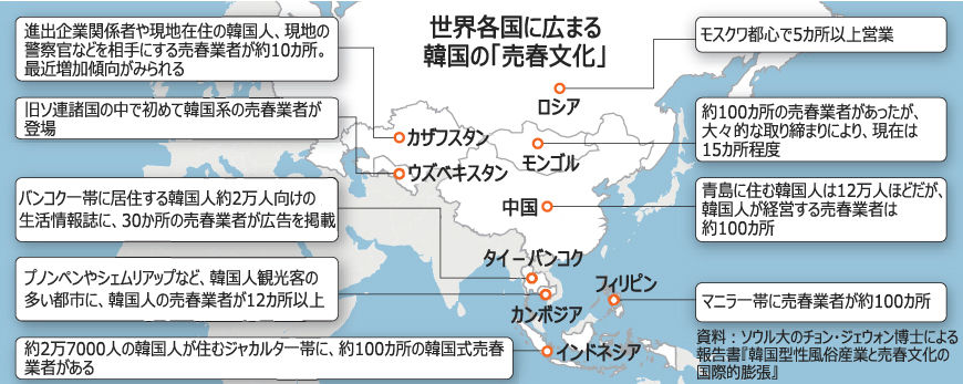 えーっと 性接待をさせられた韓国女性や 海外で春を売らされてる韓国女性も