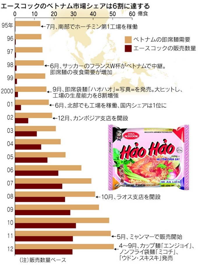 エースコックの即席麺が、500億円
