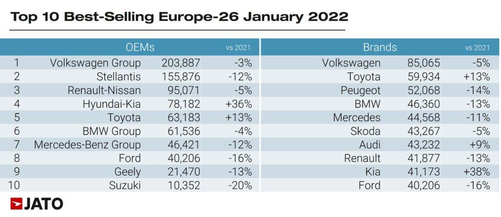 1위는 점유율 24.1%의 폭스바겐그룹이었고, 2위는 스텔란티스(19.4%)였다. 르노그룹은 9.3%로 현대차그룹에 3위 자리를 내주고 4위로 내려앉았다.