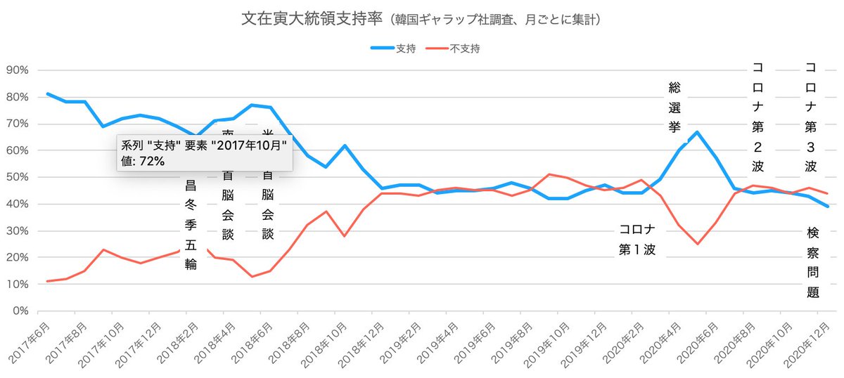 支持率の推移を見ると、南朝鮮人て軽薄。