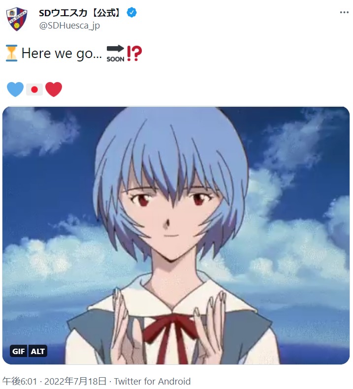 つい先日、橋本拳人がスペイン2部のウェスカに移籍したんだが、移籍前のアピールGIFがエヴァンゲリオンで笑ったw