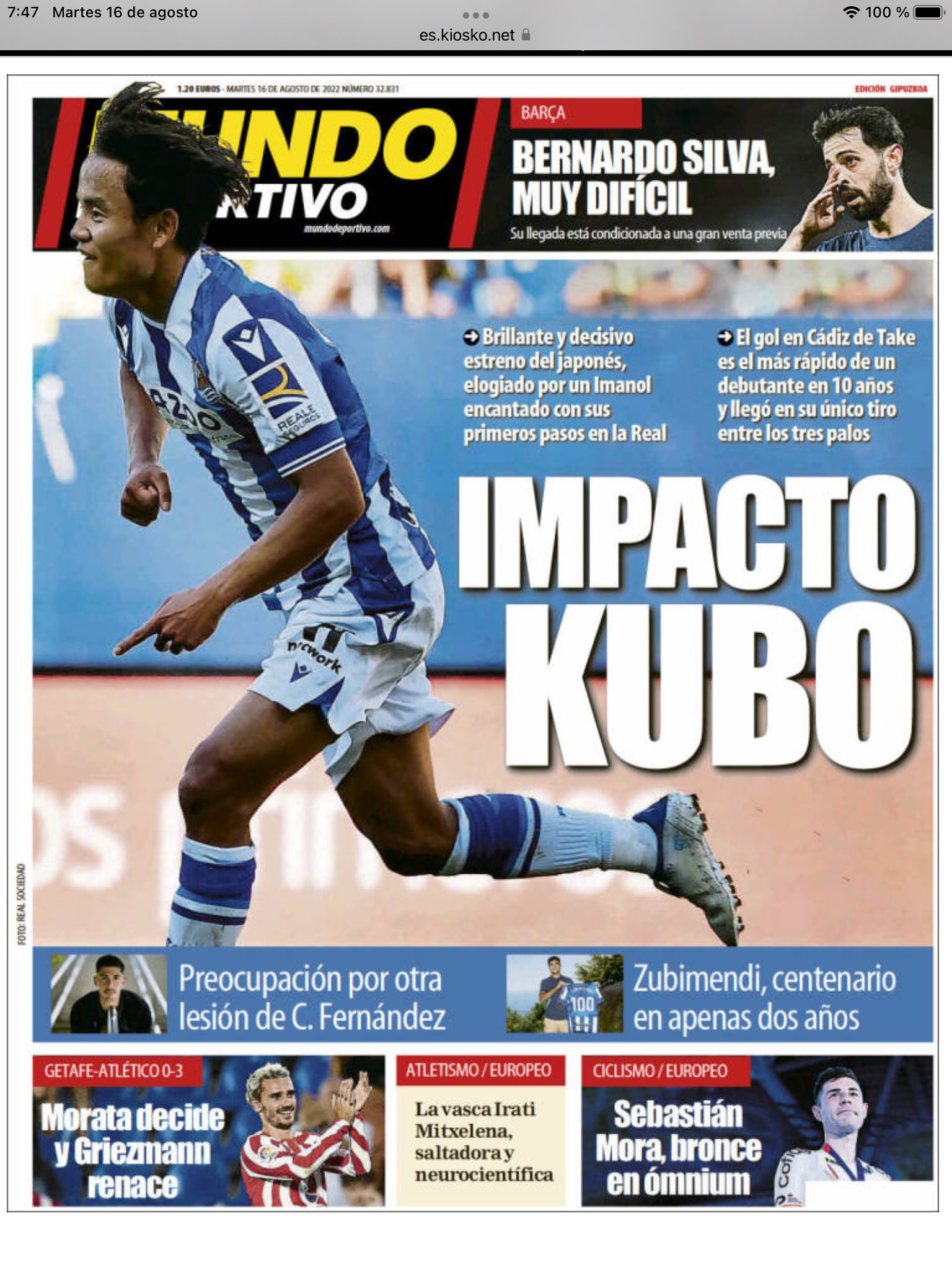 選択肢が限られ、久保自身も移籍する希望を伝えた状況下で、スペインのスポーツ紙『MARCA』の電子版は日本時間15日夜に、マドリード側が最終的に折れ、週明けにも久保の完全移籍でのソシエダ加入が発表されると報じた。