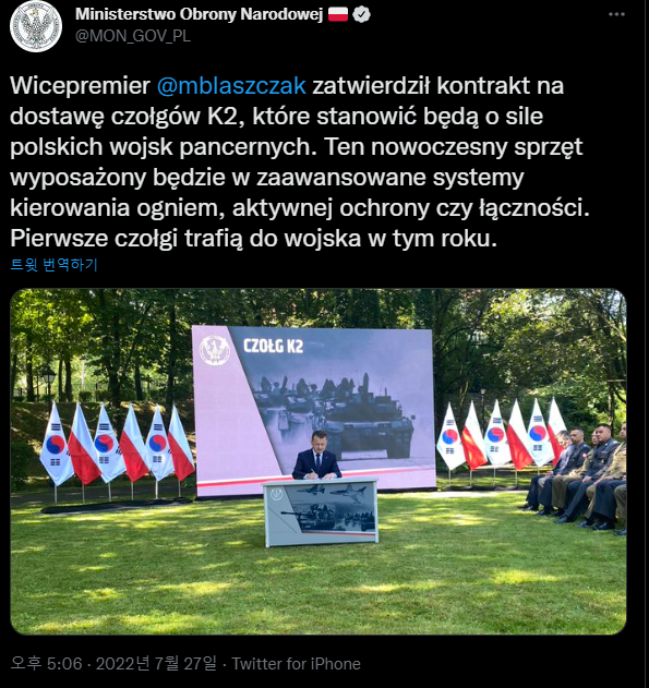 이에 맞춰 폴란드 측은 현대로템이 생산하는 국산戰車K2를 2024년까지 180대 외에도 2030년까지 400여대를 추가 구매하기로 하면서 구매물량을 크게 늘렸다.
