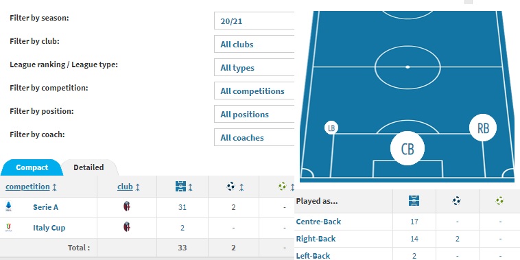 ミハイロビッチ監督は冨安を主軸にチームを形成し、殆どの試合で冨安健洋がチームでほぼトップのボールタッチ数だった。