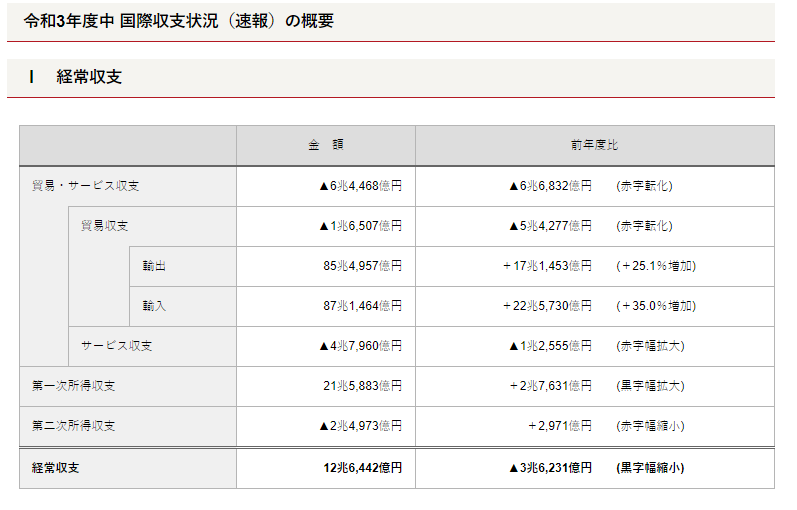 第一次所得収支 21兆5,883億円 ◀︎黒字