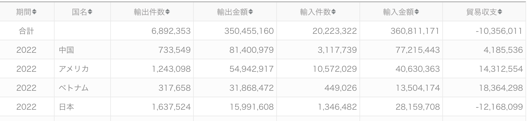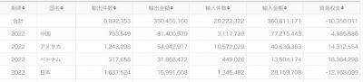 ・韓国の2022年1/1〜の対日貿易赤字は121億6800万ドル