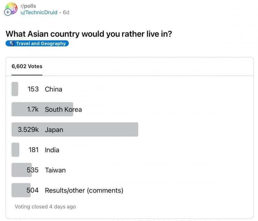 海外投票…アジアで暮らしたい国は?朝鮮人に生まれたのは前世の業。