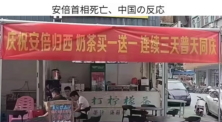 中国では安倍元首相の死去後、山上徹也容疑者を英雄化したり、店が安倍元首相の死を祝って割引イベントを行ったりしたという。多くの中国人が安倍元首相を自国の戦争犯罪を否定する代表的な日本の右派とみていると、SCMPは伝えた。