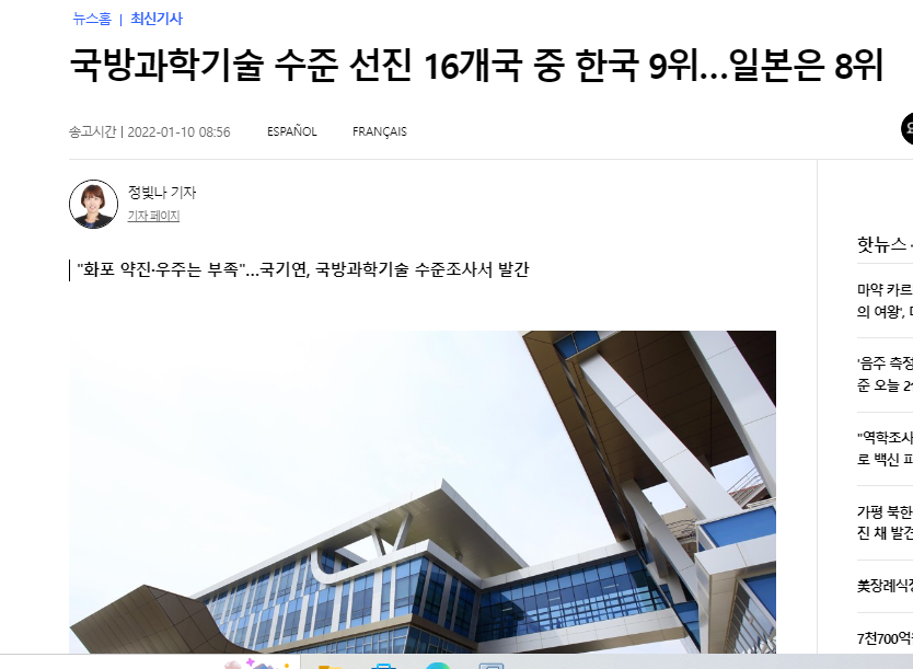 国防科学技術水準先進16カ国のうち韓国9位…日本は8位