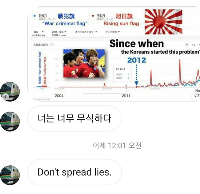 「旭日旗排除のための活動を積極的に行なっていたら、私のSNSに日本の右翼的ネットユーザーがひどい攻撃をしてきた」と伝えた。