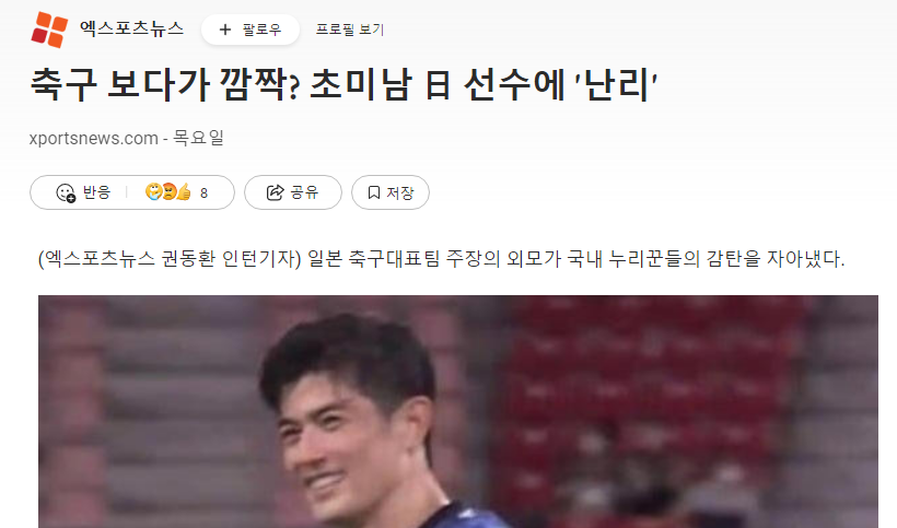 xportsnews 日本サッカー代表チーム主将の容貌が国内ネチズンの感嘆を誘った。