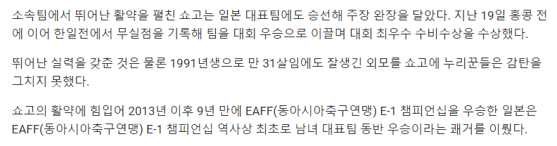 韓国内では日本に敗れた代表チームに対する風当たりが強まる一方、地元メディア「xportsnews」は「サッカーでビックリ? 超イケメンの日本人選手に『大騒ぎ』」との見出しで、「日本代表の主将の姿に、国内ネットユーザーから称賛の声が上がった」と指摘している。