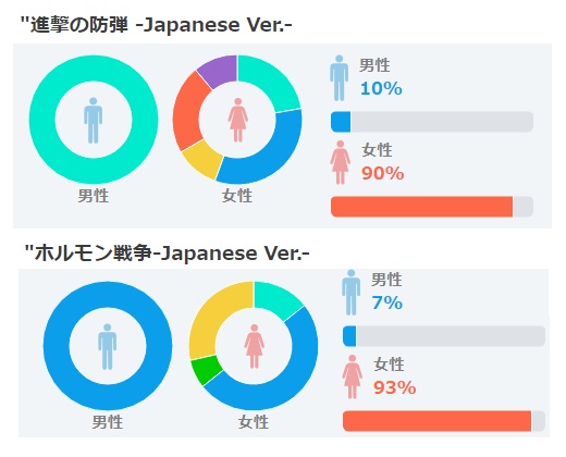 3)BTS 「進撃の防弾」(日本語)と「ホルモン戦争」(日本語)の年齢割合