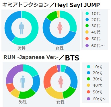 2)BTS 「I NEED U」の韓国語ver. と日本語ver. の年齢割合