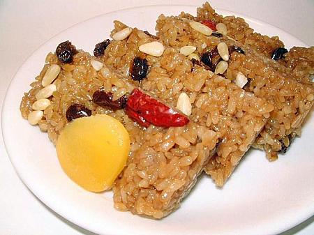 [yak bap] : 간장, 꿀 or 설탕, 대추, 계피, 찹쌀 등을 이용해 만든 chewing한 식감의 디저트. 찹쌀로 만들긴 했지만 식사로써의 음식은 아니다.