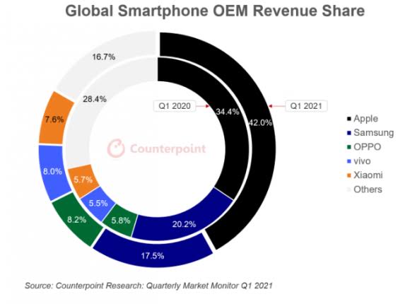 삼성 2분기 세계 스마트폰 점유율 21%