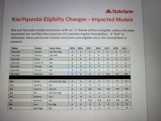 State Farm Insuranceの広報担当者は声明の中で「当社は、起亜とヒョンデの車の盗難被害が急激に増加しているため、一部の州で特定の年式および装備の新規顧客からの申し込みを一時的に受け付け停止しています。これは、当社の顧客と自動車保険業界全体が影響を受ける深刻な問題です」と述べて、保険加入を拒否していることを認めました。