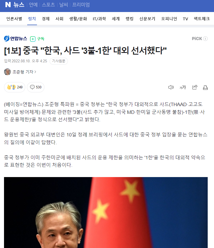 ザ・ヒルは「尹錫悦(ユン・ソクヨル)大統領は中国を敵対視することを恐れる態度を見せている」として「中国の台湾侵攻の影響が韓国まで広がることを懸念している」と報じた。