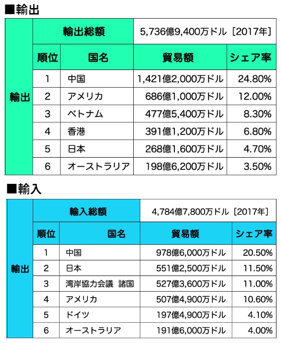 韓国の貿易に占める対中国の割合は、金額ベースでおよそ20~25%らしい。