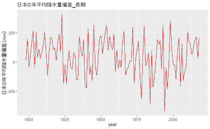 世界の年降水量偏差の経年変化(1901〜2021年)