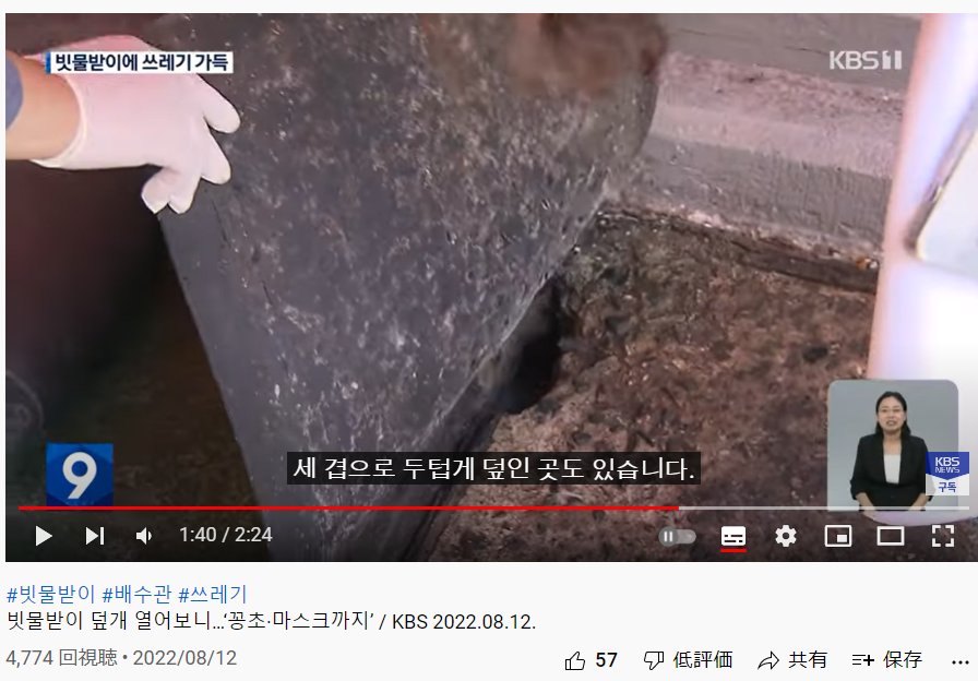 韓国人は清掃業者が仕事を無くさないようにポイ捨てをするらしいから、今回の冠水は人災でもあるな商店街では側溝にゴミを捨てないように側溝を塞いでたのかな?