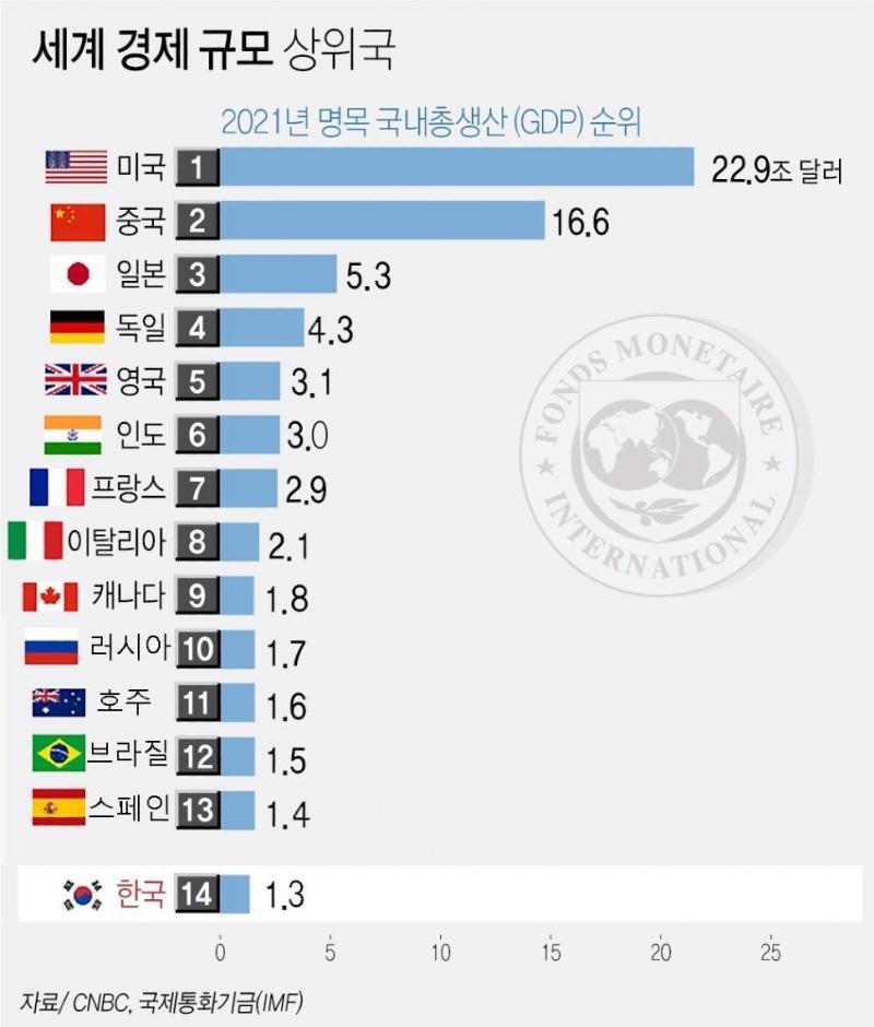 韓国が10位→14位に落ちるのは、