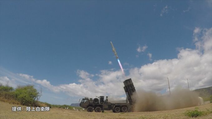 トラック型の発射装置が機械音を上げ、ミサイルが収まる荷台部分を上空へ向けた。ミサイルの射程は約200キロ。防衛省は1千キロ程度に伸ばす能力向上型を開発しており、日本を攻撃しようとする他国を攻撃する「敵基地攻撃能力(反撃能力)」を備えるとみなされる可能性がある。