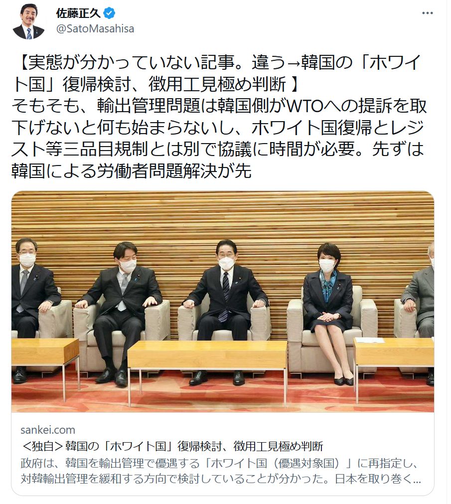 当たり前<独自>韓国の「ホワイト国」復帰検討、徴用工見極め判断