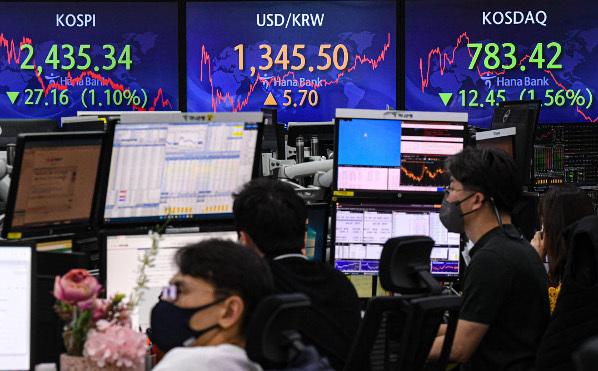米連邦準備制度理事会(FRB)の積極的な利上げの見通しが浮上しウォン相場が13年4カ月来の安値水準に急落した。ドル高で危険資産に対する回避心理が高まり、22日のKOSPI指数は前日より1.21%安の2462.50で取引を終えた。KOSDAQ指数もやはり前日比2.25%下落の795.87で取引を終え800ポイントを割り込んだ。KOSDAQ指数が800ポイントを下回ったのは先月7月28日から17営業日ぶりだ。