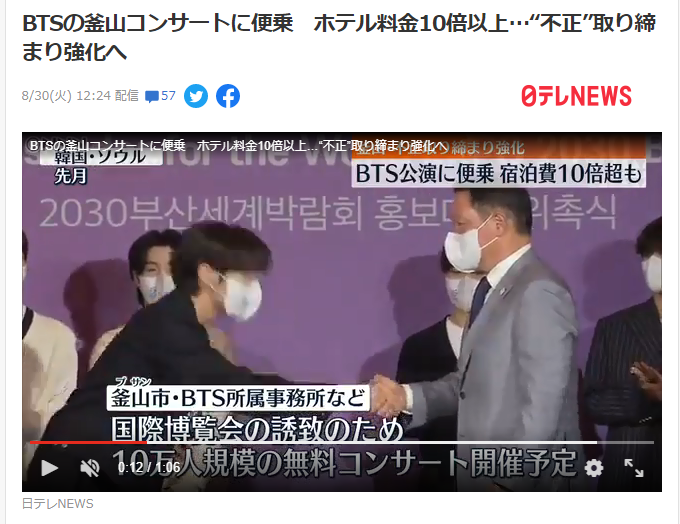 しかしスーパースターであるBTSを出演させることにしておきながら、交通対策や“ぼったくり宿泊料金”などに対する釜山市の対策が未熟で、議論が巻き起こっている。