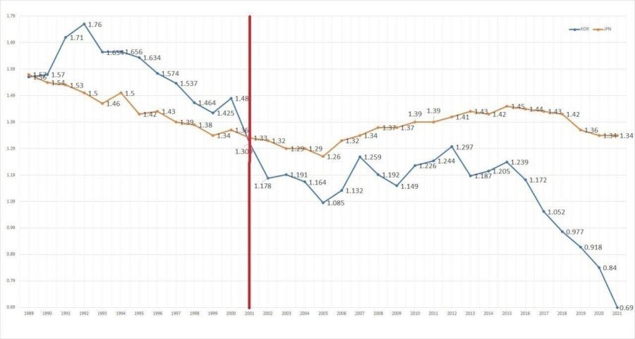 凄く貴重なデータサンプルになるだろうね。今年の出生率は0.75ぐらいになるだろうという記事をどこかで見たなあ