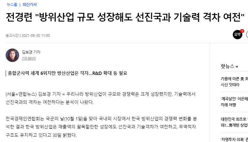 ①全経連「防衛産業の規模が成長しても先進国と技術力の格差は依然として続く」