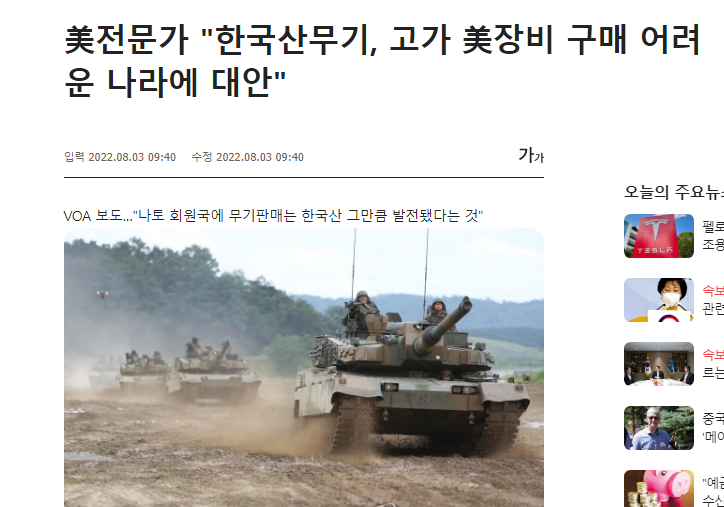 ②米専門家「韓国産兵器、高価な米装備購入が難しい国に代案」