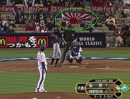 韓国ももちろん昔は旭日を使っていたが、韓国国内の全体主義の排斥世論に迎合し2012年から削除するようになった。韓国では旭日旗は帝国主義の象徴で戦犯旗と認識されている
