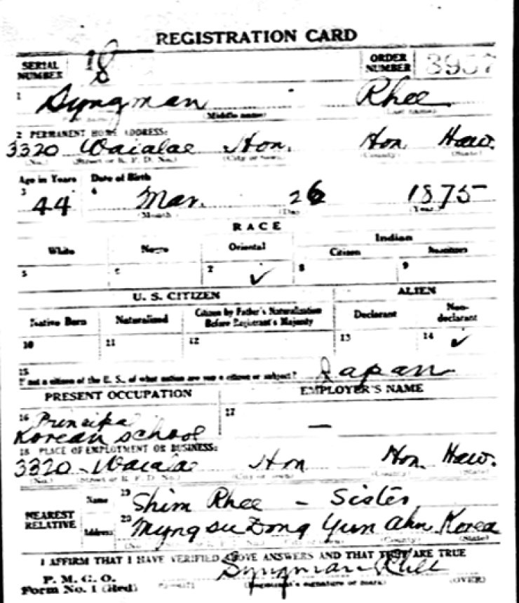 李承晩元大統領の徴集書類で国籍が日本。一致する連邦文書60件が発見。