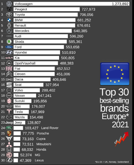 殆ど全ての外国人は、トヨタが日本の会社であることを昔から知っている。2022년 상반기 유럽 완성차 기업 점유율 상위권은