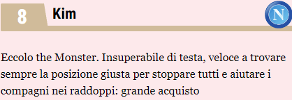 이번 여름 나폴리는 페네르바체의 한국 센터백 김민재를1,800만 유로 이상에 영입했으며,